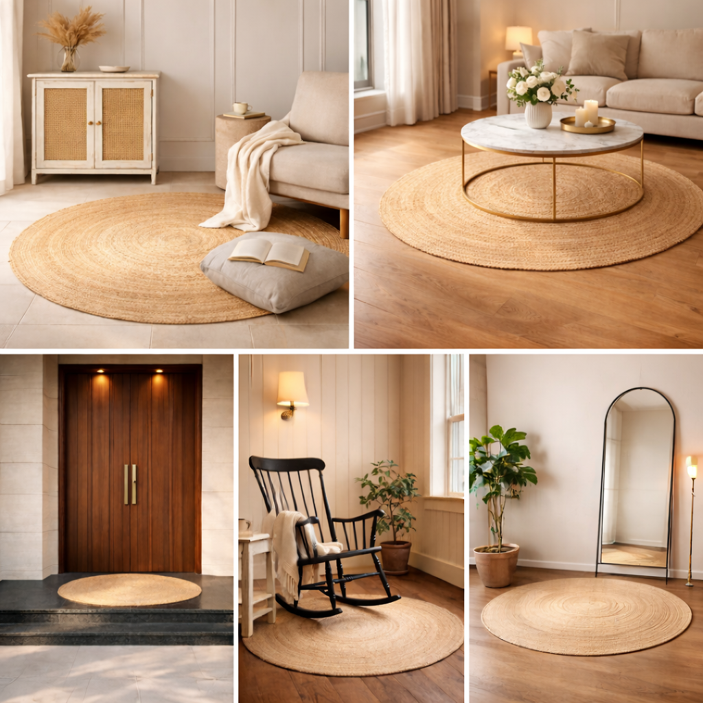 Designed to be styled as a mirror rug, side rug, or under a coffee table, the Zarié Sutra design brings quiet balance to every corner of your home. From side desks and reading chairs to bedside spaces and entryways, it blends effortlessly into everyday living. A handwoven jute rug made with natural fibers, created for homes that value warmth, texture, and calm.
